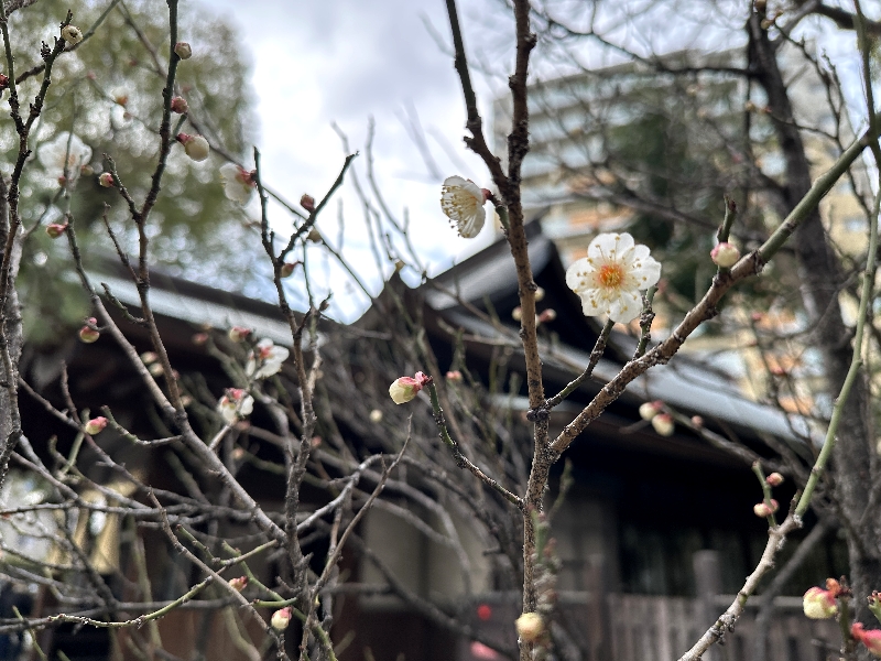で住吉神社は、梅の花が咲きかけとった!!もうすぐ春。
