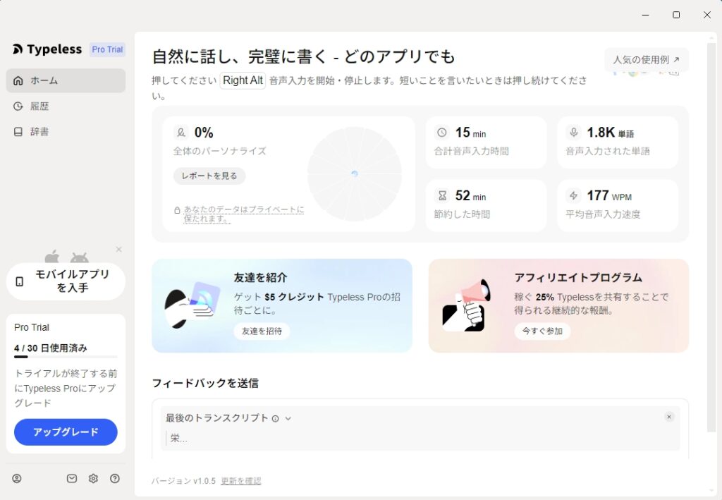 「タイピングをやめた」